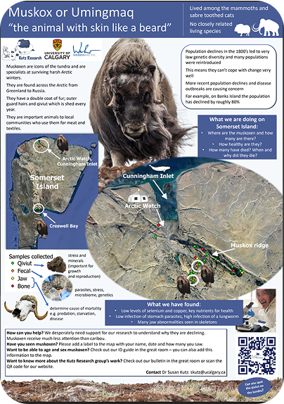 Researcher Susan Kutz's group describes the use of genomics science with community based monitoring to track muskoxen decline, and parasites and bacteria in country food